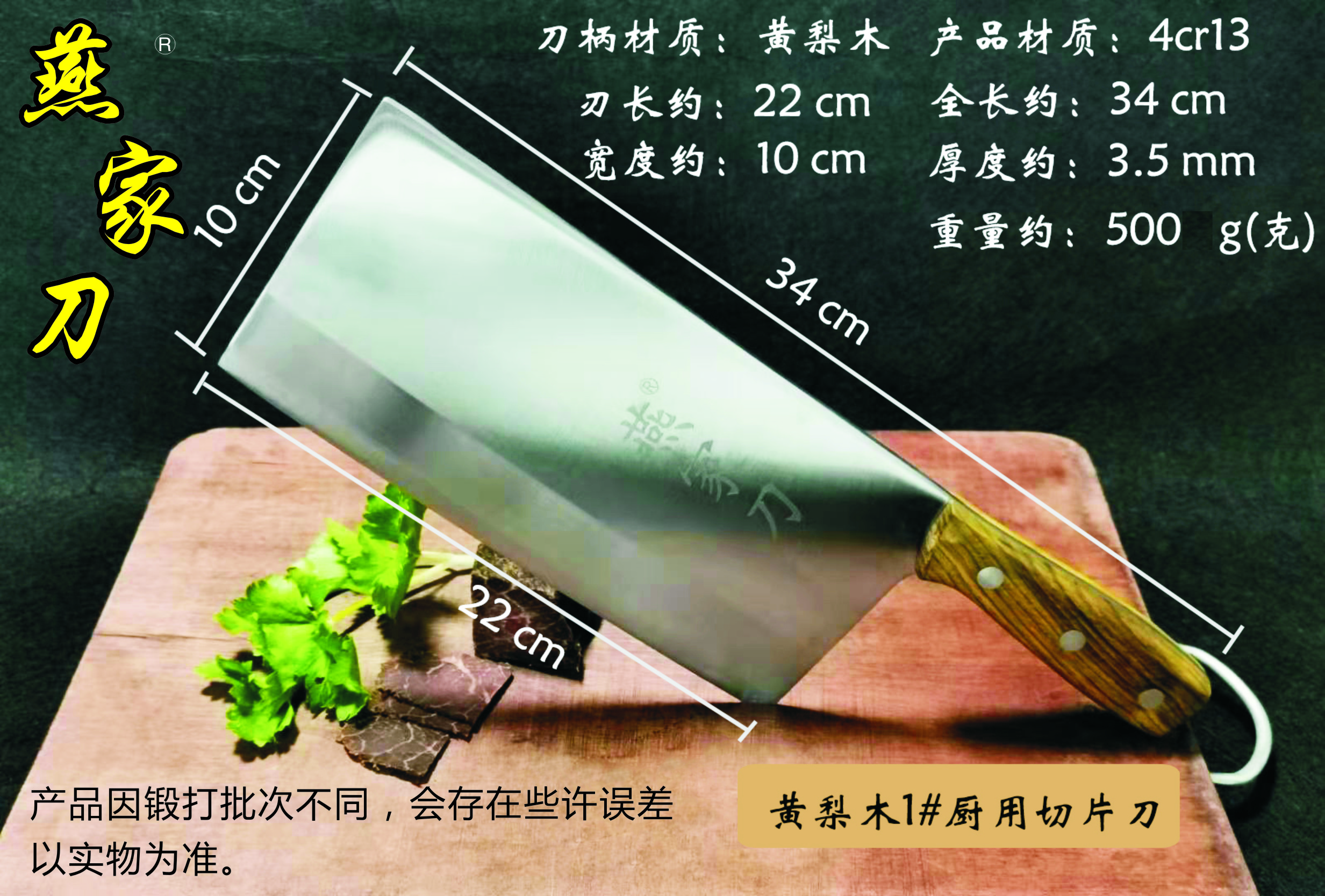 樂山燕家刀具有限公司(公司前身為燕佳鐵匠鋪),公司坐落于美麗的佛都之鄉(xiāng)樂山嘉州,在全國各地有上千家代理經(jīng)銷點,公司專業(yè)銷售、設(shè)計、制作各類刀具。秉承一貫鍛造三精要求,即選料精、用料精、工藝精。所選材料全部產(chǎn)自滇東鐵礦優(yōu)產(chǎn)區(qū)。本品牌刀具堅持千挑萬選為材,千錘百煉為刀的手工鍛造工藝宗旨。具有鋒利耐磨、持久耐用,用料上乘,硬度高、韌度強的特點!